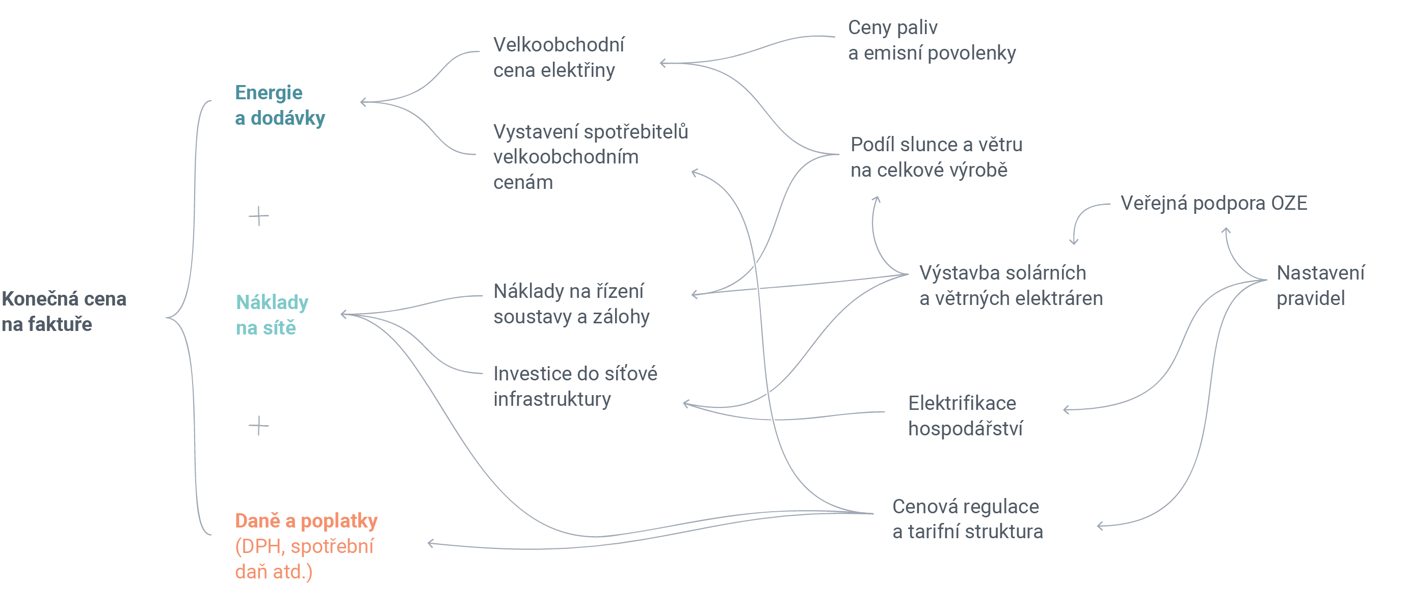 O tom, jak silně a jak rychle se jednotlivé faktory projeví v konečných cenách elektřiny, rozhoduje zejména nastavení pravidel státem, hlavně pak cenová regulace a tarifní struktura. Právě tato pravidla určují, jakými kanály se systémové náklady rozloží mezi různé skupiny spotřebitelů, státní rozpočet a další zdroje financí.
