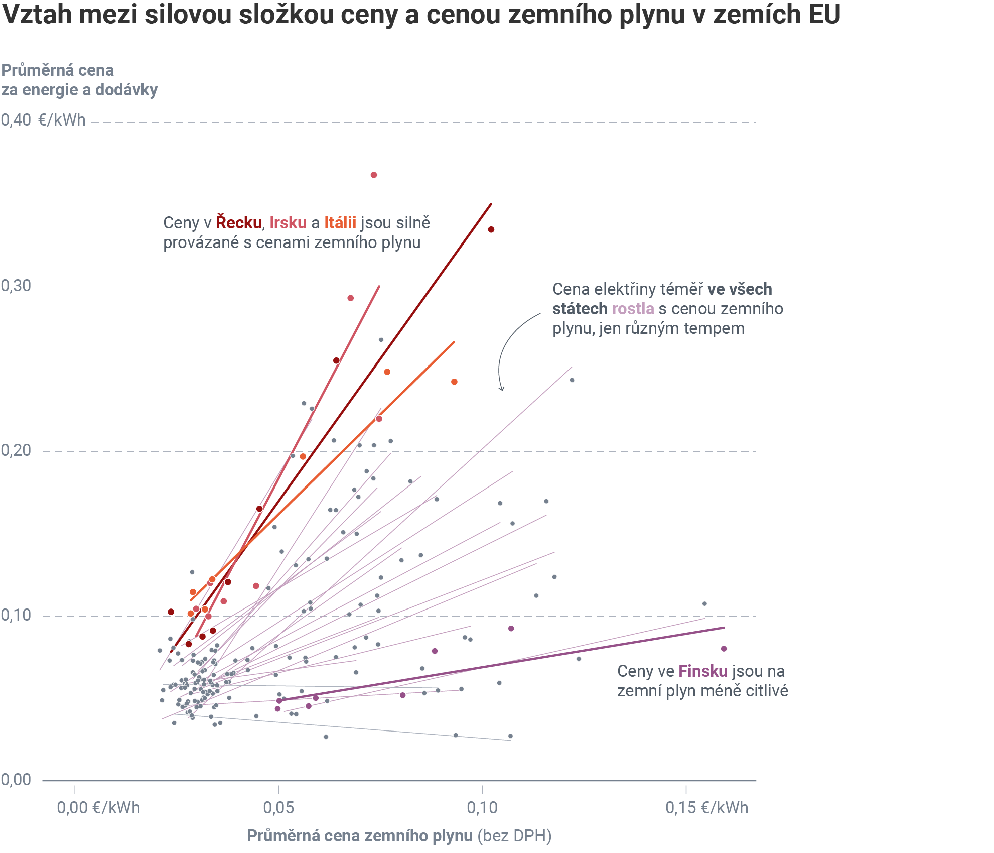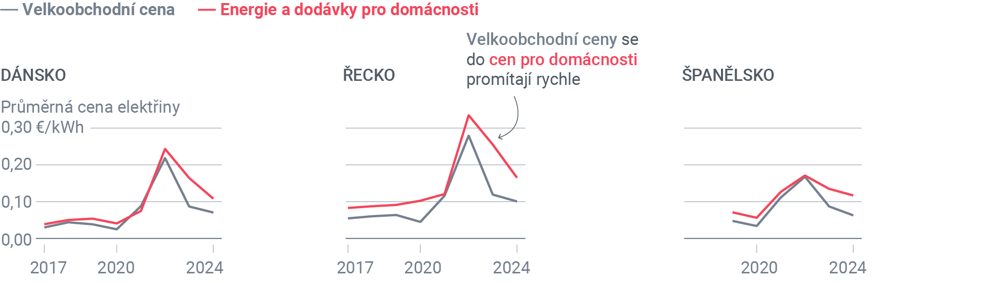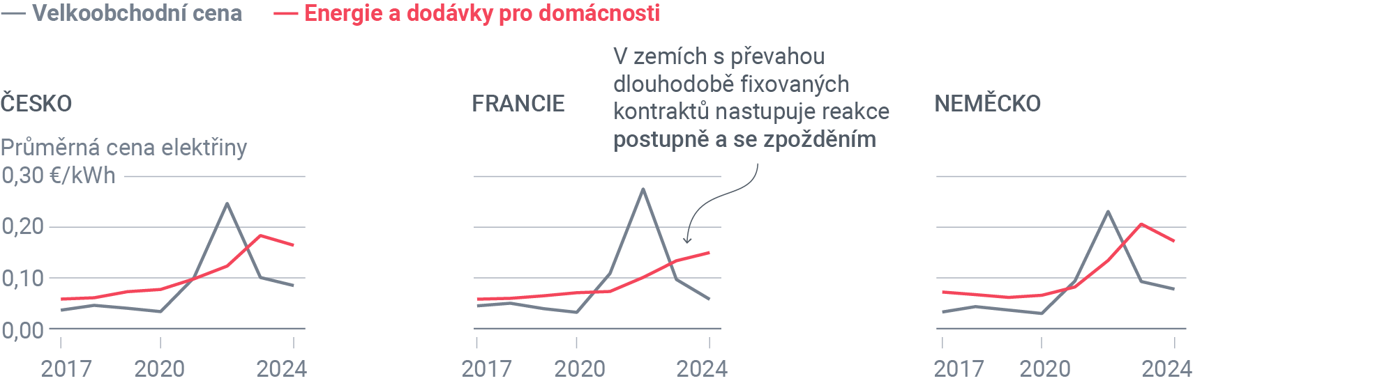 Naproti tomu domácnosti v Česku, Německu a Francii využívají převážně dlouhodobě fixované tarify, proto mají ceny v těchto zemích větší setrvačnost.
